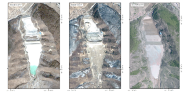 某尾矿库动态变化监测影像(生态环境部 供图)