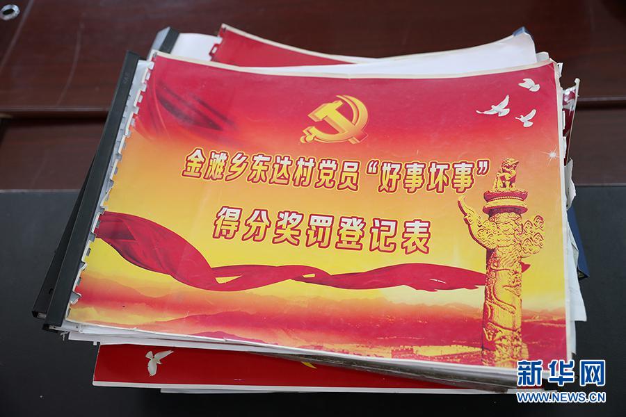这是金滩乡东达村党员“好事坏事”得分奖罚登记表。新华网记者焦鹏摄