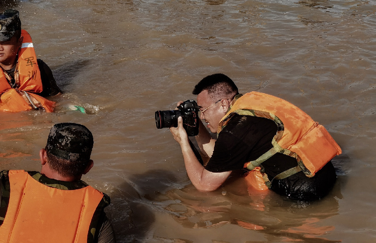 工人日报 王伟伟 2020年7月25日在安徽的洪水中采访抗洪一线官兵