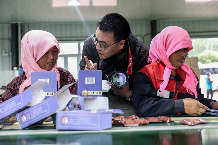 2020年9月9日在宁夏西吉县采访脱贫车间的职工