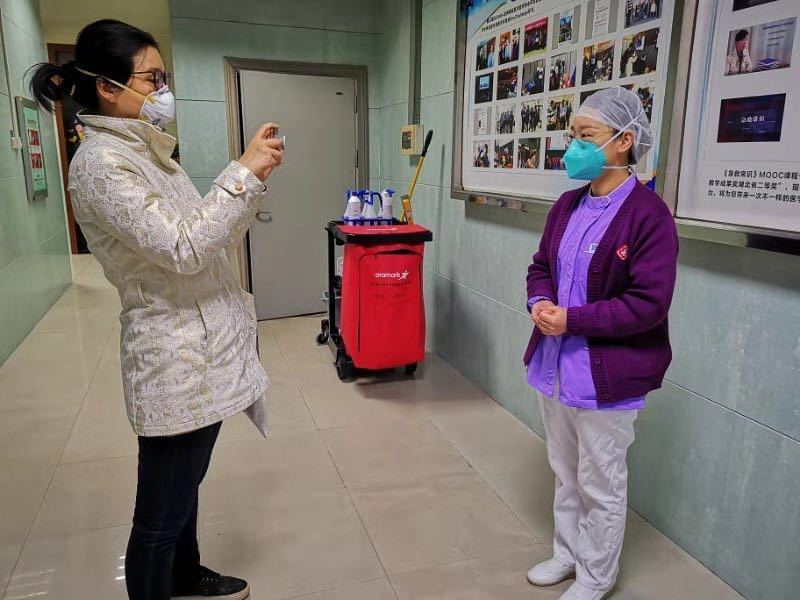 2020年2月2日,经济日报记者乔申颖在武汉大学中南医院采访