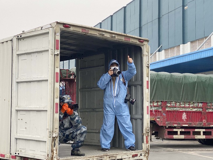 2020年2月26日,季春红在武汉采访驻鄂部队抗击疫情运力支援队