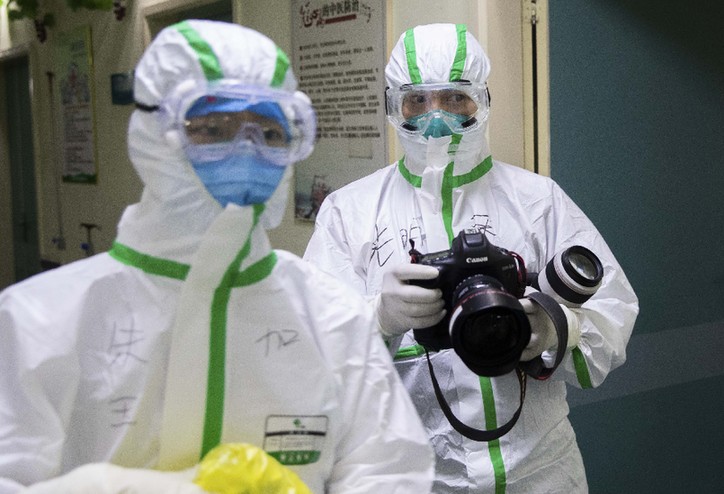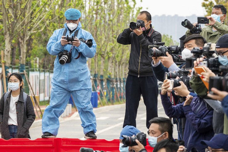 2020年4月14日,季春红在雷神山医院进行航拍采访