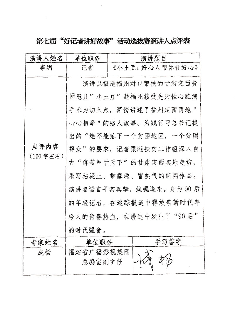 2015年7月从事新闻工作以来,先后深入一线,参加近百场主题宣传报道,福州与定西扶贫报道就是其中之一。2018年,参与采写广播通讯《忠诚》获2017年度福建省新闻奖二等奖;同年,策划采访《一张蓝图绘到底 东进南下建新城——福州“滨海新城”建设启动仪式暨大数据项目签约直播》获2017年度福州市广播电视优秀新闻作品二等奖;2020年,专题报道《难以磨灭的记忆,永不止息的奋进——纪念福州解放70周年特别直播节目》获2019年度福建新闻奖新闻直播类二等奖。