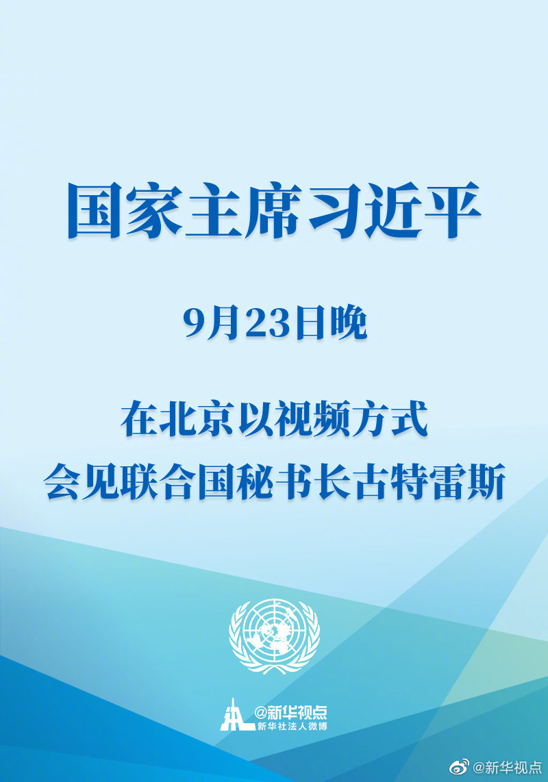 国家主席习近平23日晚在北京以视频方式会见联合国秘书长古特雷斯。
