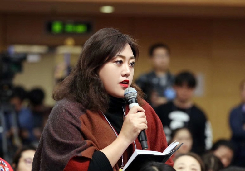 图为记者在十三届全国人大三次会议“代表通道”提问