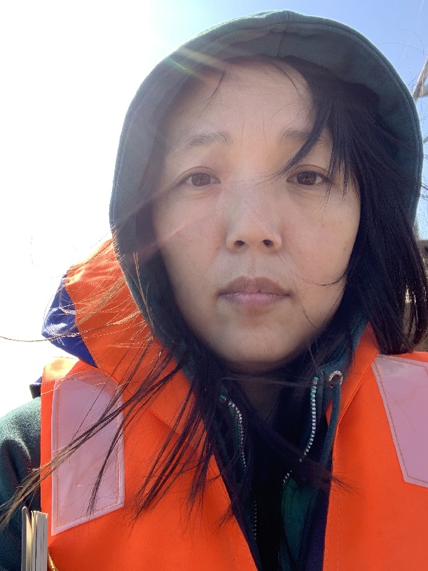 沿海风大气温低,4月份了,我还穿着羽绒服去采访。