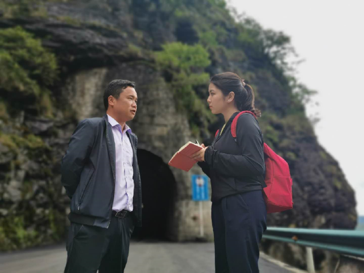 记者在毕节市纳雍县采访当地干部