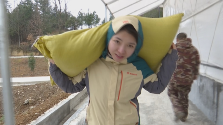 记者在铜仁市沿河县与扶贫队员一起搬运饲料