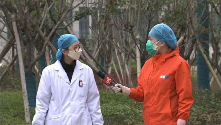 江西广播电视台邹辰馨在随州市医院采访援随医疗队员