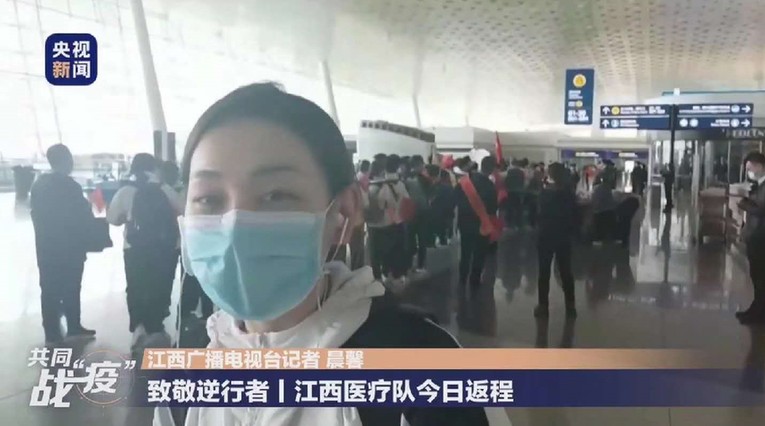 江西广播电视台邹辰馨在央视频直播江西省支援随州市医疗队返程
