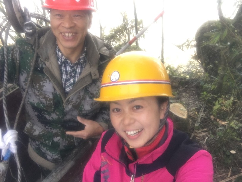 在朝东岩绝壁上采访结束后,杜瑞芳与村民合影。