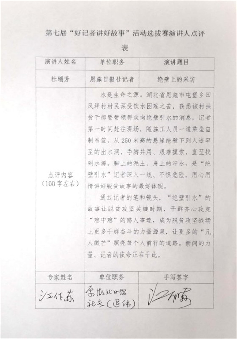 2008年12月进入恩施日报社工作至今,从事新闻工作12年,是一名拥有14年党龄的80后记者。深耕基层报道,疫情、汛情来临,一直冲锋报道最前沿,采写了多篇优秀的抗疫、防汛一线报道。先后被评为恩施州抗疫先进个人、恩施州防汛救灾先进个人,多次被评为恩施日报社优秀员工、十大记者。代表作有朝东岩“绝壁取水”系列报道、《疫情下的深情遇见》、《巨龙盘山记》等。