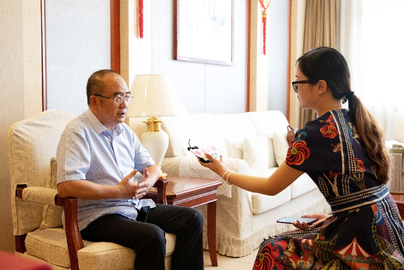 湖北日报记者李墨9月8日在北京采访刚刚获授“人民英雄”国家荣誉称号的张定宇。