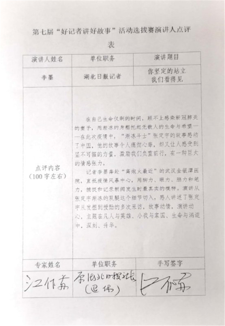 疫情暴发后,率先奔赴武汉市金银潭医院,发掘报道了重大典型人物张定宇。同时聚焦疫情中的医护、援鄂医疗队、医院环卫工等,采写了多篇优秀的抗疫一线报道。