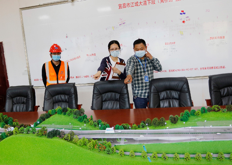 采访沿江绿色道路的建设者们