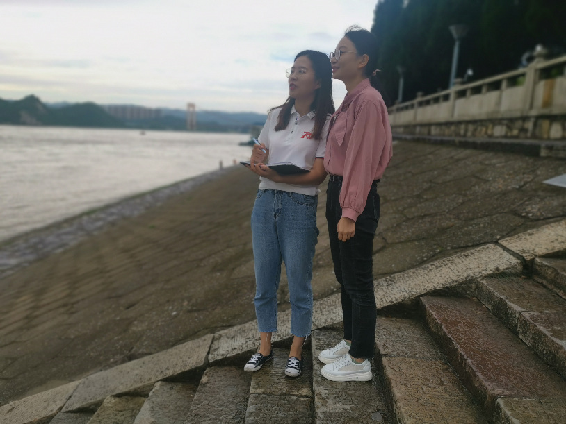 在长江岸边采访市民,与他们一起记录母亲河畔的可喜变化