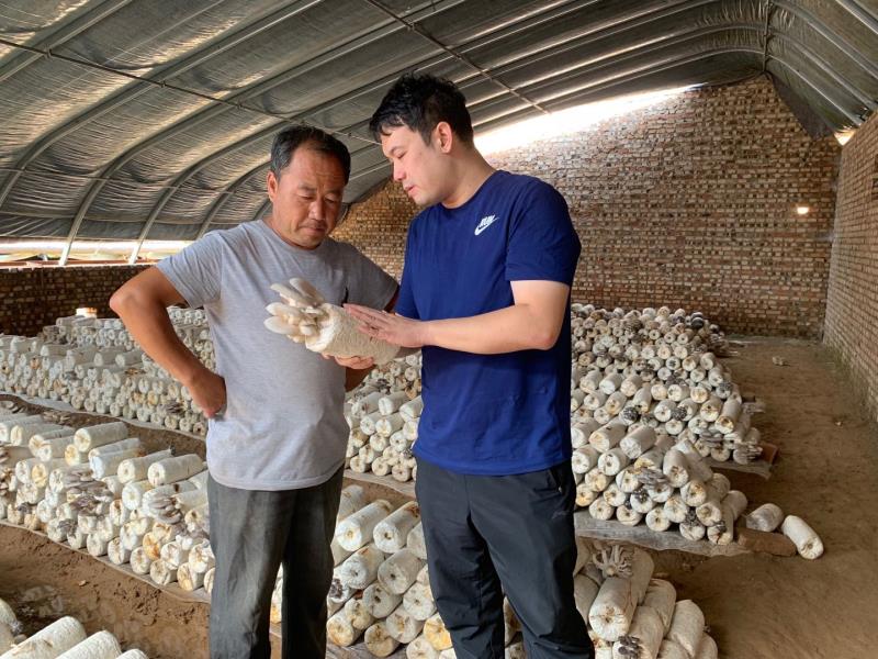 中国青年报·中国青年网胡志中(右)曹家垣乡调研蘑菇种植情况。