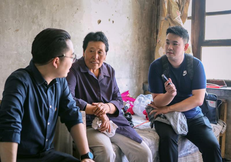 中国青年报·中国青年网胡志中(右)在山西省石楼县灵泉镇走访建档立卡户。