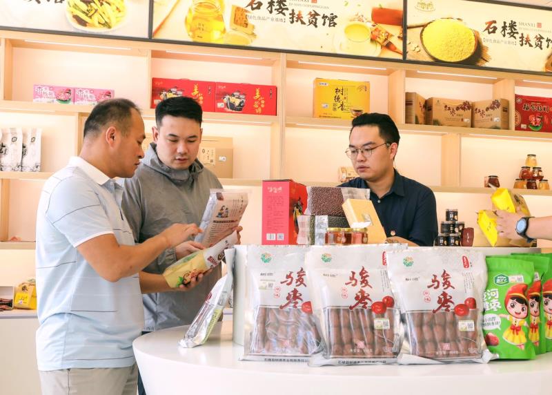 中国青年报·中国青年网胡志中(左二)在山西省石楼县调研创业产品发展情况。