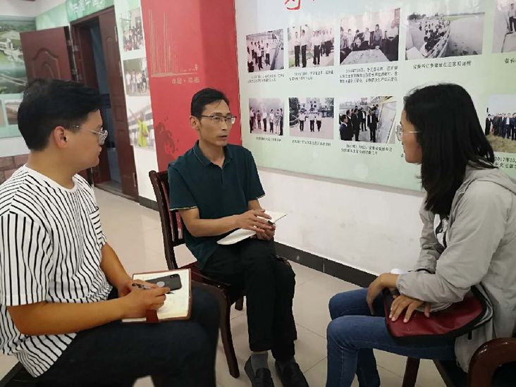 常河(中)在采访2020年淮河防汛