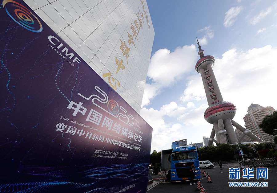 9月27日,由中央网信办、上海市委网信委、新华通讯社联合主办的“2020中国网络媒体论坛”在上海开幕。来自政府、学界、业界的嘉宾围绕“变局中开新局:中国网络媒体的责任与使命”这一核心主题展开深入探讨和交流。图为中国网络媒体论坛会场外景。新华网 陈杰 摄