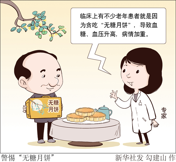 另外,市场上所谓的“无糖月饼”,是指馅料中不含蔗糖的月饼,但月饼本身含有大量的淀粉,可分解成葡萄糖。临床上有不少老年患者就是因为贪吃“无糖月饼”,导致血糖、血压升高,病情加重。