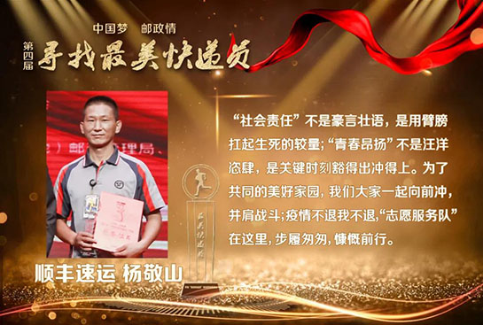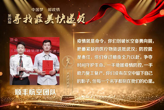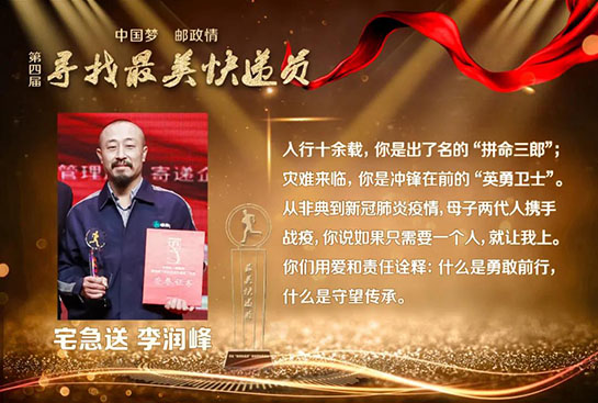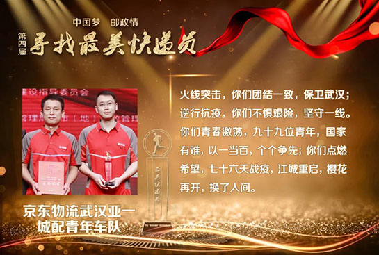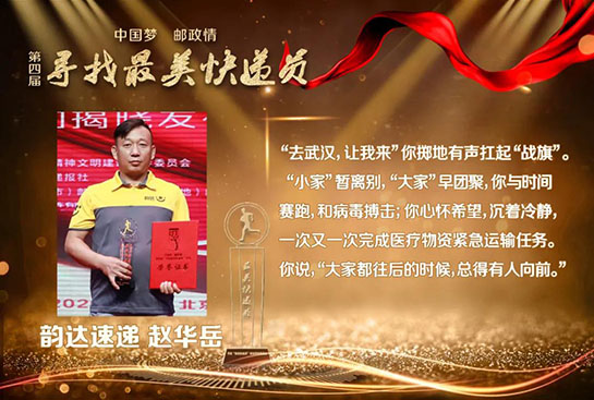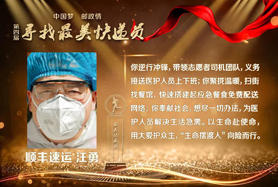 新冠肺炎疫情发生后,邮政快递业400多万快递小哥勇敢逆行,冒疫奔忙,在保障防疫物资运输寄递、促进生产流通和居民消费等方面发挥了重要作用,也涌现出了一大批先进典型。为了表彰先进,学习先进,本届活动组委会特别调整了获奖名额,提高抗疫快递员代表比例。除了在疫情中挺身而出、向险而行,被党中央、国务院、中央军委表彰为“全国抗击新冠肺炎疫情先进个人”,并被国家邮政局授予“最美快递员”特别奖的顺丰速运武汉分公司快递员汪勇、中国邮政武汉分公司投递员徐龙之外,获评“最美快递员”的逆行者代表,还有:韵达速递的赵华岳,五进五出赴武汉抗疫一线运送物资,10年的从业经验让他遇事沉着冷静,他一直践行“大家都往后的时候,总得有人往前走”;宅急送的李润峰,千里驰援将新冠病毒检测试剂送到武汉,他的母亲2003年非典时期亲赴病区运送药品,从非典到新冠,母子两代人携手战疫;中国邮航团队勇于担当,不畏艰险,累计运输防疫物资2550余吨,安全飞行185架次,用实际行动深刻地诠释了代代传承的“邮航精神”;顺丰航空团队在武汉封城之后,17小时打通防疫物资空中运输通道,75天里执飞航班290个,向抗疫一线运送防疫及生活物资6874吨;圆通航空团队持续执行海内外抗疫包机共84班,成立不过五年的他们交出了一份高效组织支持和实战化练兵的抗疫成绩单;京东物流武汉亚一城配青年车队累计承运7000余吨医疗应急物资,配送了6000余吨米面粮油、蔬菜等生活必需物资。