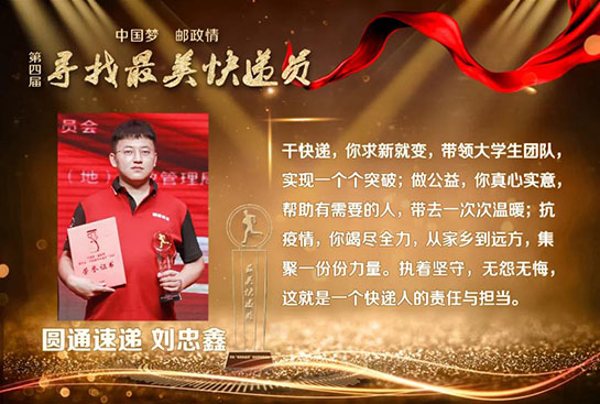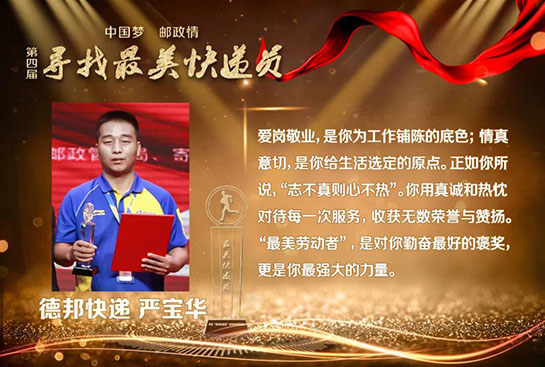 9月29日上午,第四届“中国梦·邮政情 寻找最美快递员”活动揭晓发布会在京举行,徐龙、汪勇、李成、葛军、王惠贤等14名“最美快递员”和中国邮航团队、京东物流武汉亚一城配青年车队、中通快递西藏日喀则团队等5个“最美快递员”团队受到表彰。