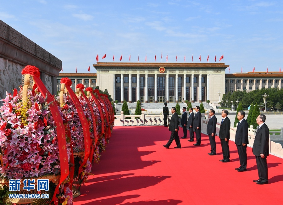 9月30日上午,党和国家领导人习近平、李克强、栗战书、汪洋、王沪宁、赵乐际、韩正、王岐山等来到北京天安门广场,出席烈士纪念日向人民英雄敬献花篮仪式。 新华社记者 鞠鹏 摄
