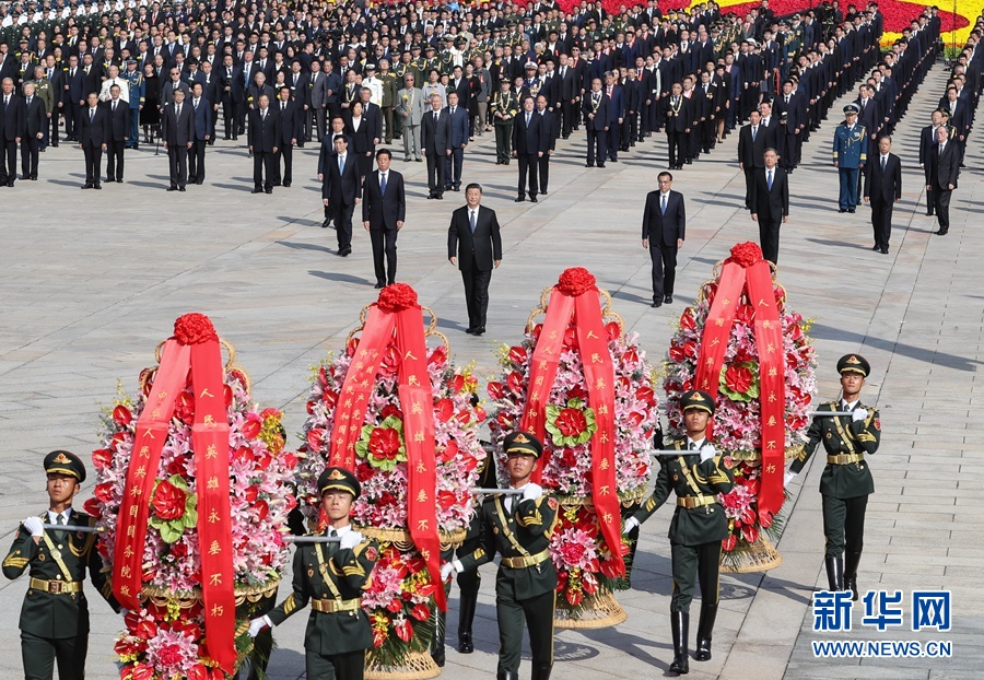 9月30日上午,党和国家领导人习近平、李克强、栗战书、汪洋、王沪宁、赵乐际、韩正、王岐山等来到北京天安门广场,出席烈士纪念日向人民英雄敬献花篮仪式。 新华社记者 谢环驰 摄