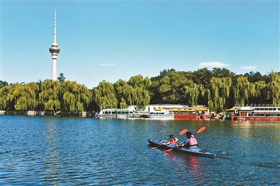 秋高气爽、天蓝水清,玉渊潭公园南侧的八一湖碧波荡漾,五彩的皮划艇在水中游弋……从9月份开始,八一湖内2万平方米的水域正式成为北京市天然河湖水域,并向市民开放水上运动试点,市民可体验和学习皮划艇运动。实际上,“十三五”以来,越来越多的北京城市河湖已经从之前的“闲人勿进”变成了市民的亲水乐园。