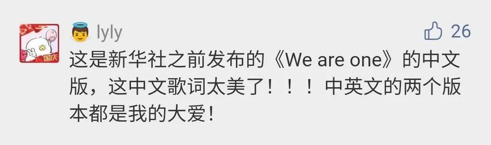 @Monstristing:歌声有激励磅礴的气势,又兼具一丝丝的温柔,吟唱铺展开星辰大海的浩瀚,真是美妙。听完感觉元气满满,祖国母亲生日快乐!