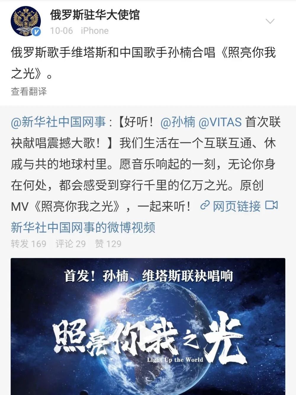 西陵歌者:世界有黑夜,难阻我们追求光明;世界有纷乱,无碍我们喜爱和平;唯有身受现实之惑,方能坚守净土之约。与光同行的,还有人间的烟火和温度。文明的力量在于创造与复兴;至美的旋律诞生于自然和传统,中俄两国都有深厚的文化传承和底蕴,都有守护文明照亮世界的决心。