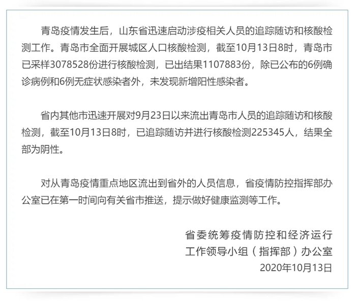 山东省迅速开展青岛疫情相关人员追踪随访和核酸检测工作
