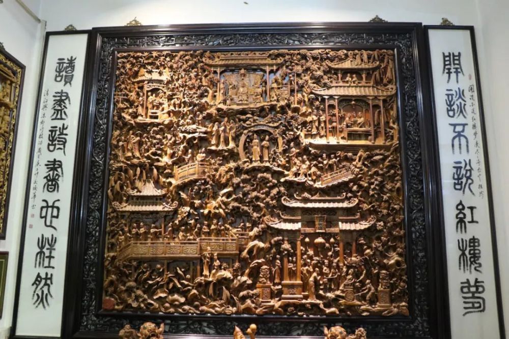 木雕大师金子松创作的素雕作品——《红楼梦·大观园》 。新华社记者 孟宜霏 摄