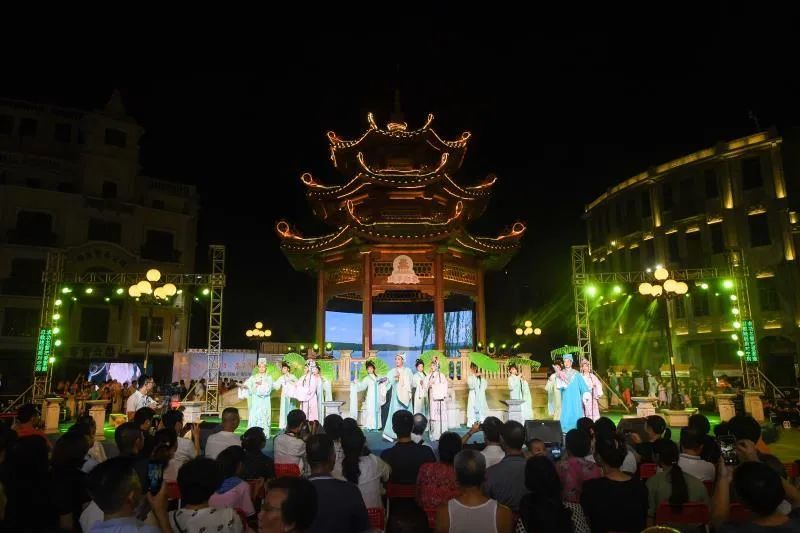人们在汕头小公园中山纪念亭观赏潮剧表演。新华社记者 陈晔华 摄