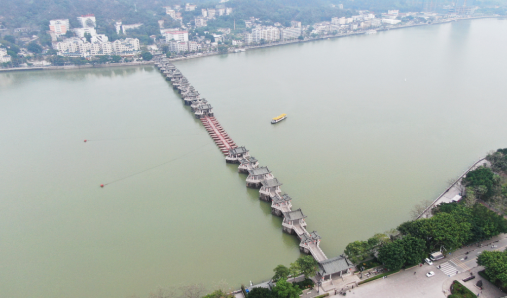 广东省潮州市韩江上的广济桥,广济桥是中国乃至世界上最早的启闭式桥梁。无人机照片 新华社记者 王瑞平 摄