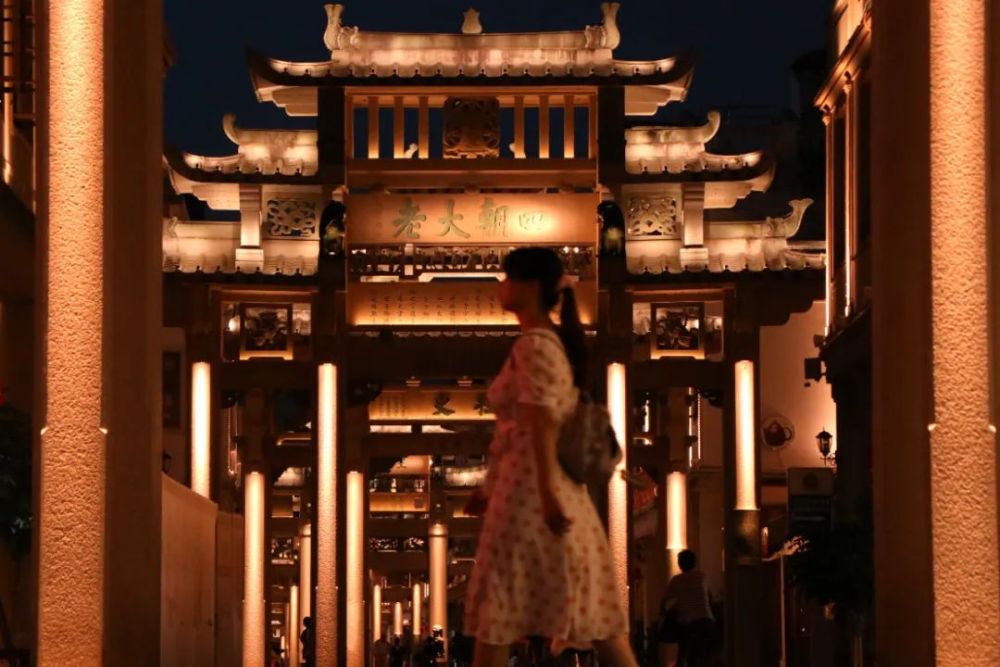一位游客走过潮州古城的牌坊街。新华社记者 洪泽华 摄