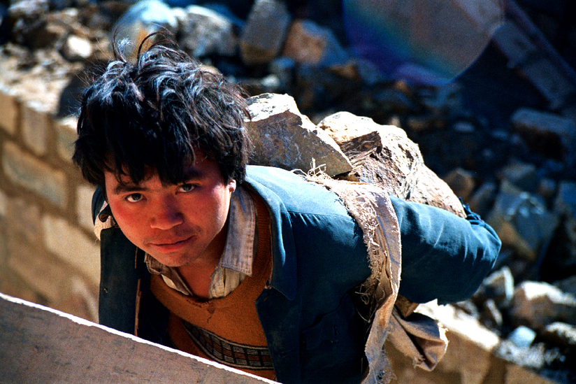 西畴县人民为了摆脱贫困,要致富、先修路,与其等着看、不如自己干,不断掀起修路热潮。图为1996年西畴县蚌谷乡程家坡村群众大干农村公路建设。(吕兴仁摄)