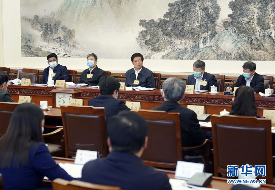 10月14日,十三届全国人大常委会第二十二次会议在北京举行分组会议,审议国旗法修正草案、国徽法修正草案、选举法修正草案、长江保护法草案等。栗战书委员长参加审议。 新华社记者 刘卫兵 摄