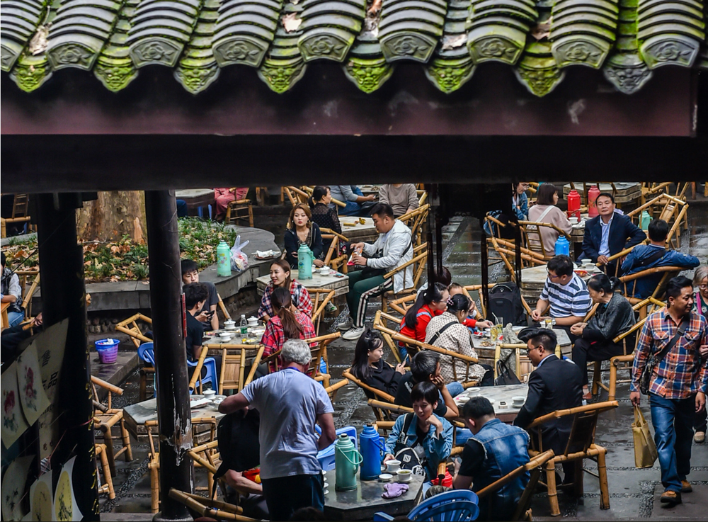 到今天,只留下了鹤鸣茶社。无论是外来游客,还是本地人,要体验最成都的茶馆生活,都要到此一游,坐上竹椅,泡上一碗茶,细品老成都的味道。