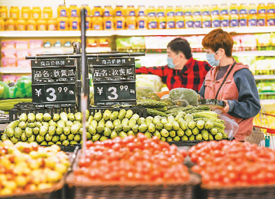 10月15日,居民在河北省遵化市一家超市选购蔬菜。刘满仓摄(人民视觉)