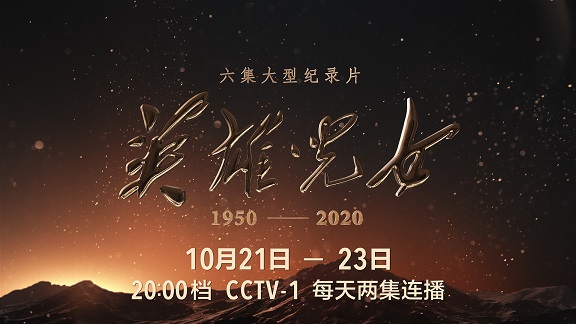 为纪念中国人民志愿军抗美援朝出国作战70周年,由中共中央宣传部指导、中央广播电视总台摄制的六集大型电视纪录片《英雄儿女》,从10月21日起在中央电视台综合频道晚8点档黄金时段播出,每天两集连播。中央电视台新闻频道等重播,中央主要新闻网站、重点门户网站和“学习强国”平台等同步推出。