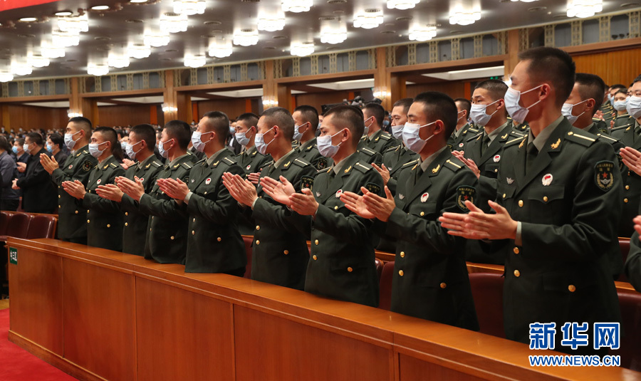 10月23日,纪念中国人民志愿军抗美援朝出国作战70周年大会在北京人民大会堂隆重举行。图为志愿军老战士、老同志入场时,大会现场的解放军和武警部队官兵代表起立鼓掌。(新华网 翟子赫 摄)