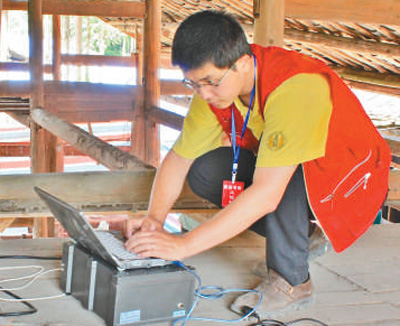 2013年芦山发生地震,曲哲赶赴现场对农居进行振动测试。中国地震局工程力学研究所供图