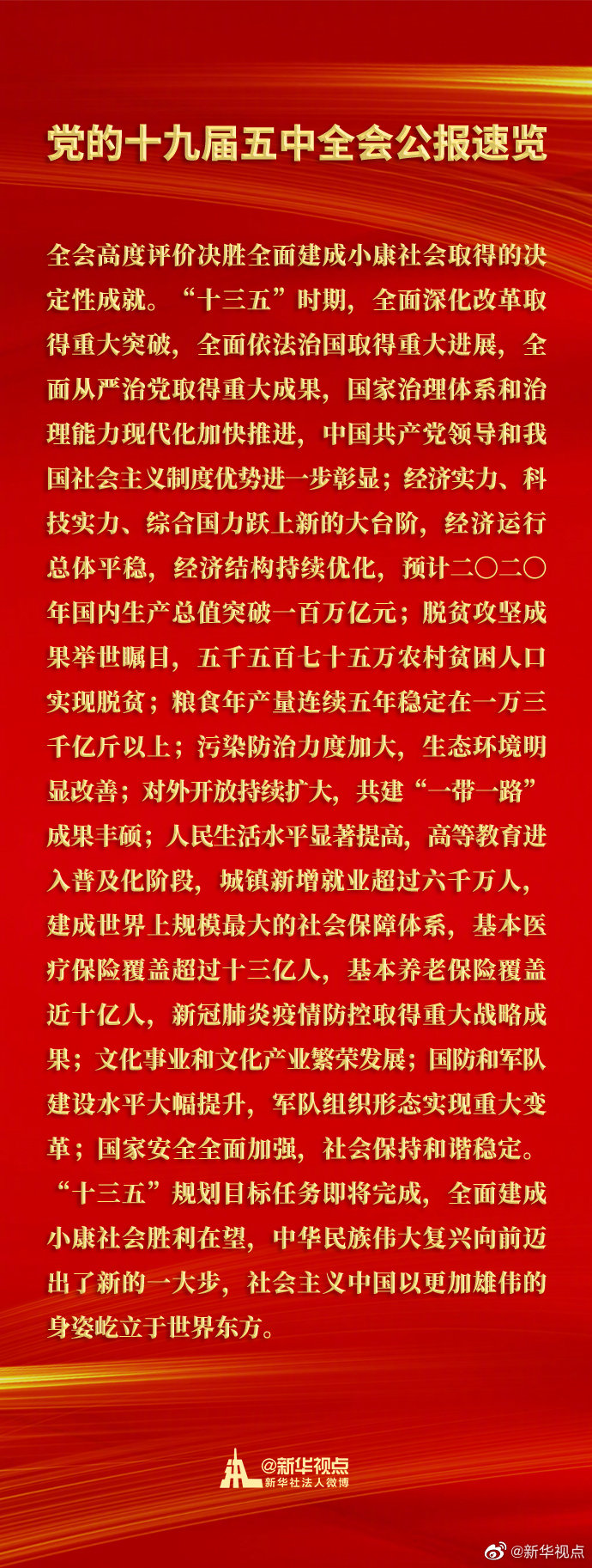 党的十九届五中全会公报速览丨全会高度评价决胜全面建成小康社会取得的决定性成就-新华网