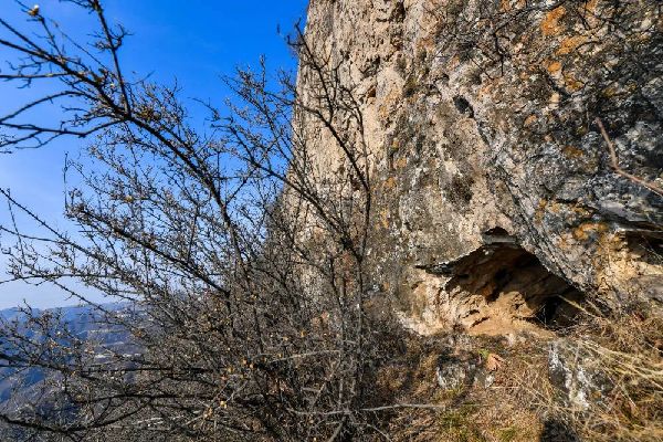 这次路程明显缩短,但却十分陡峭。有的路段,我们只能侧着身子,石阶仅容一只脚,两只手只能扒着峭壁,而身后就是悬崖,有时需要双腿跪着,慢慢挪动身体。由于没吃、没喝,嘴唇干裂起皮,开口说话也有点吃力。这样攀爬一个多小时后,一个山洞进入我们的视野。