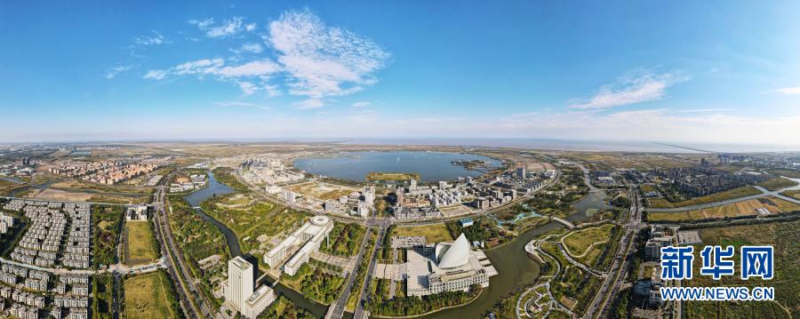 上海浦东新区临港新城滴水湖畔(10月25日摄,无人机全景照片)。新华社记者 方喆 摄