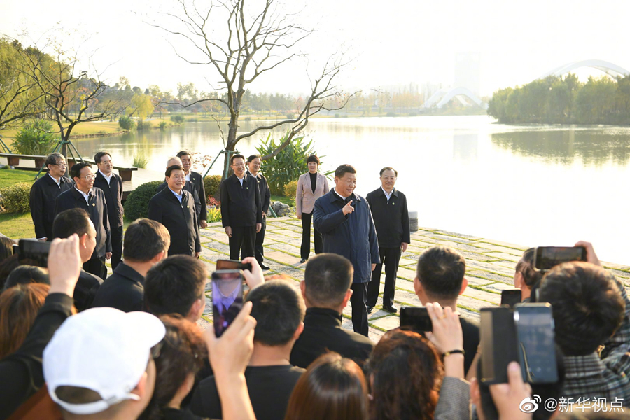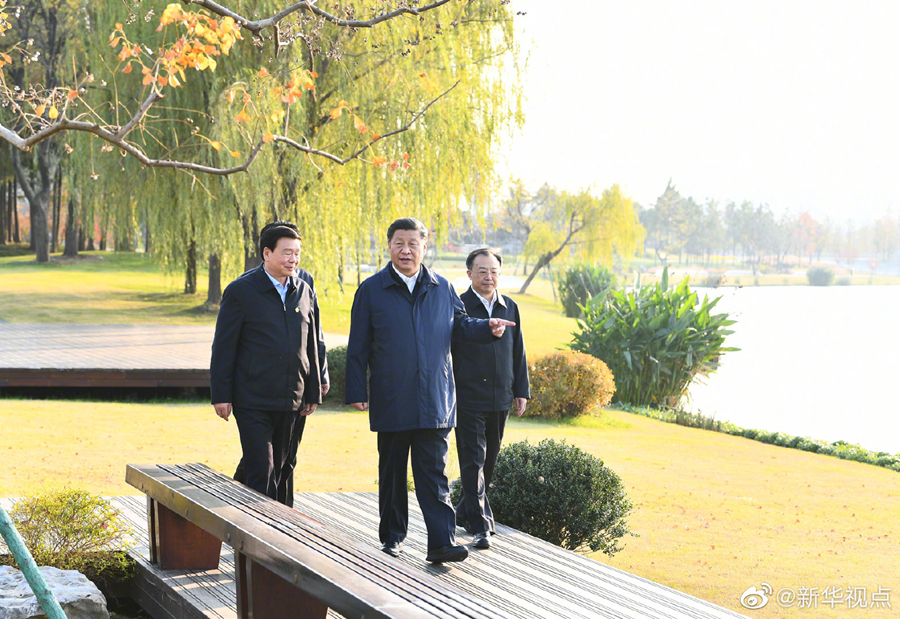习近平总书记13日在江苏省扬州市考察调研。他先后来到运河三湾生态文化公园、江都水利枢纽,了解大运河沿线环境整治和文化保护传承利用、南水北调东线工程规划建设和江都水利枢纽运行等情况。(文字记者:张晓松、朱基钗 摄影:鞠鹏、谢环驰、燕雁)